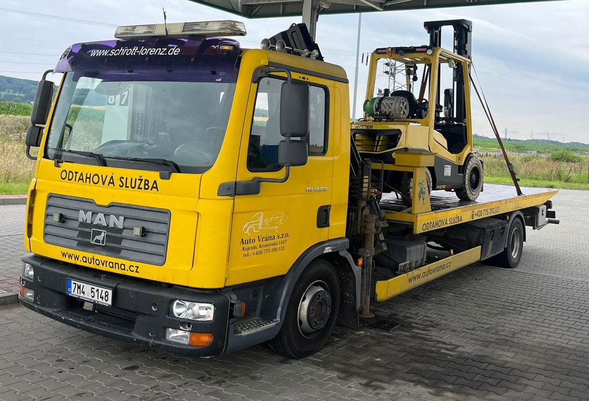Disponujeme odtahovým speciálem s celkovou nosností 12 tun, který je vybaven hydraulickou rukou pro snadnou manipulaci. Tento vůz umožňuje bezpečné nakládání a přepravu osobních, užitkových i lehčích nákladních vozidel.